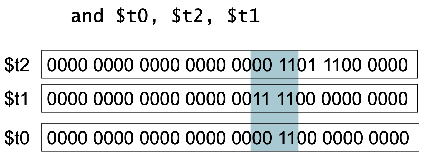 - 예 : <pre>and $t0, $t2, $t1</pre>