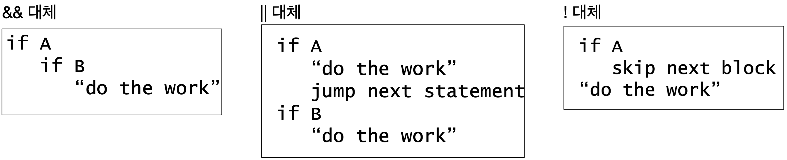 if문 안에서 &&, ||, !는 없어도 구현할 수 있기에 필수적인 것은 아니다.