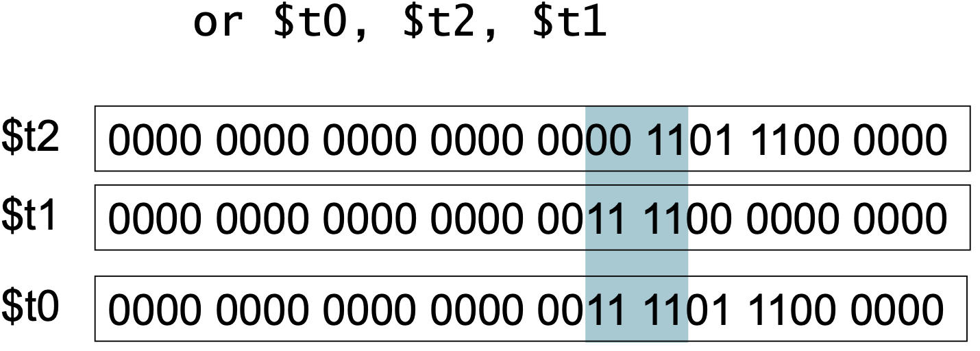 - 예 : <pre>or $t0, $t2, $t1</pre>