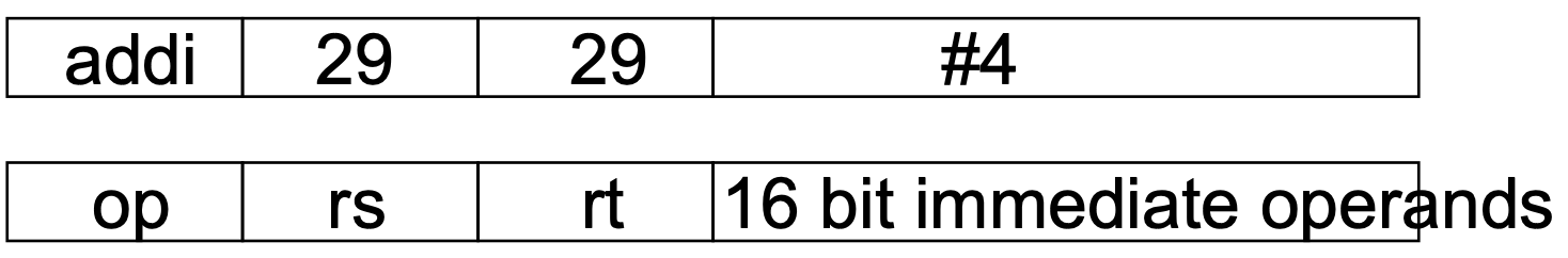 자주 사용되는 것을 single instruction으로 처리하기 위해서 MIPS에서는 <pre>addi, andi</pre>와 같은 instruction이 존재한다.