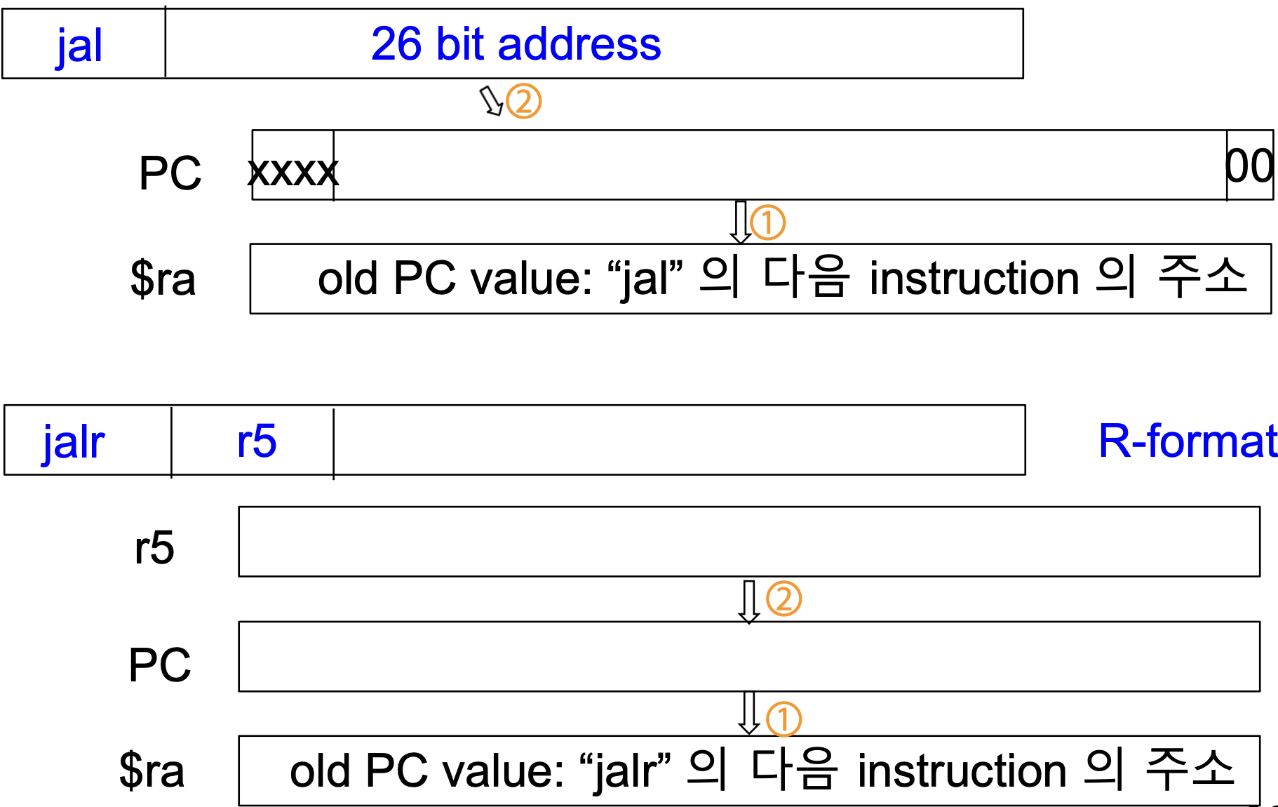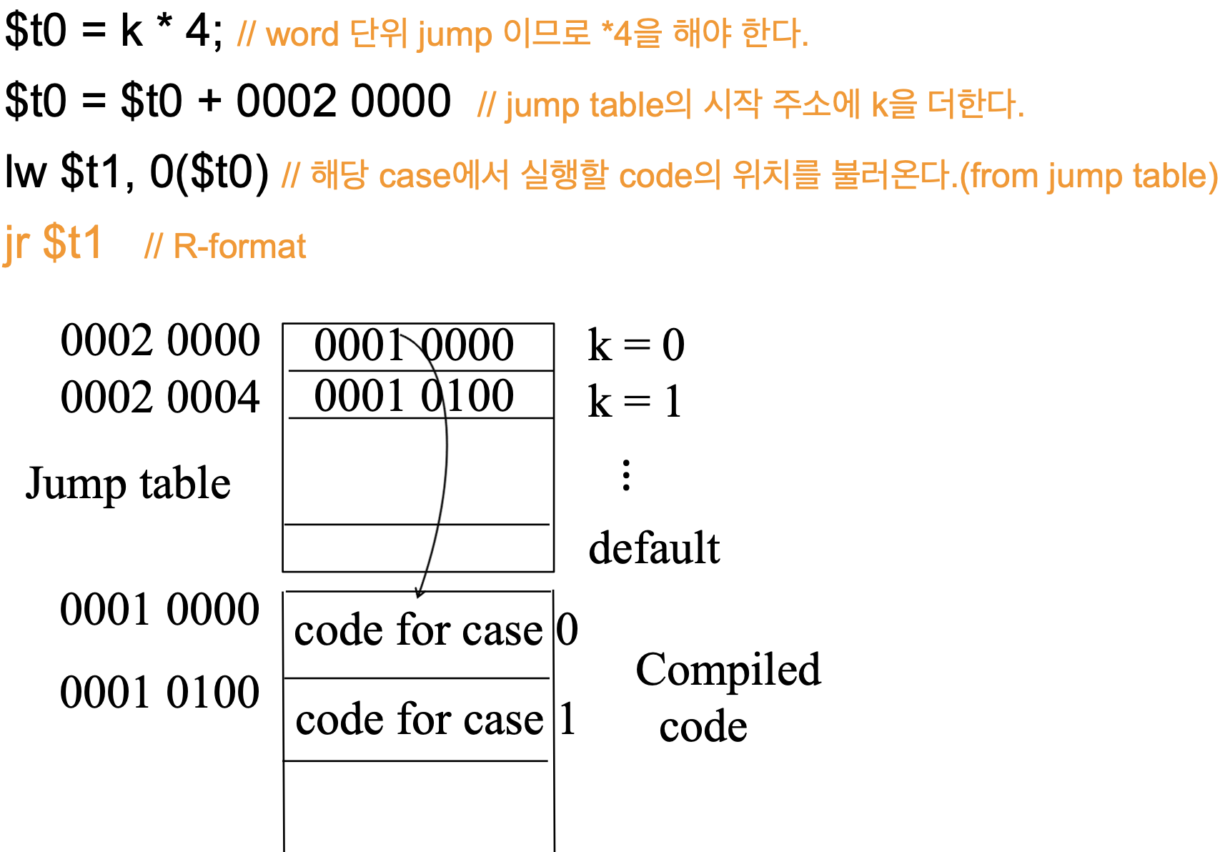 이렇게 jump 할 위치가 runtime information 일 경우 jr을 사용한다.