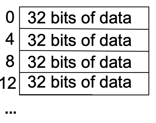 또한 word는 aligned되어 있어서 word들은 4의 배수를 시작 주소로 가지며 시작 주소의 끝 2bit는 항상 00이다.