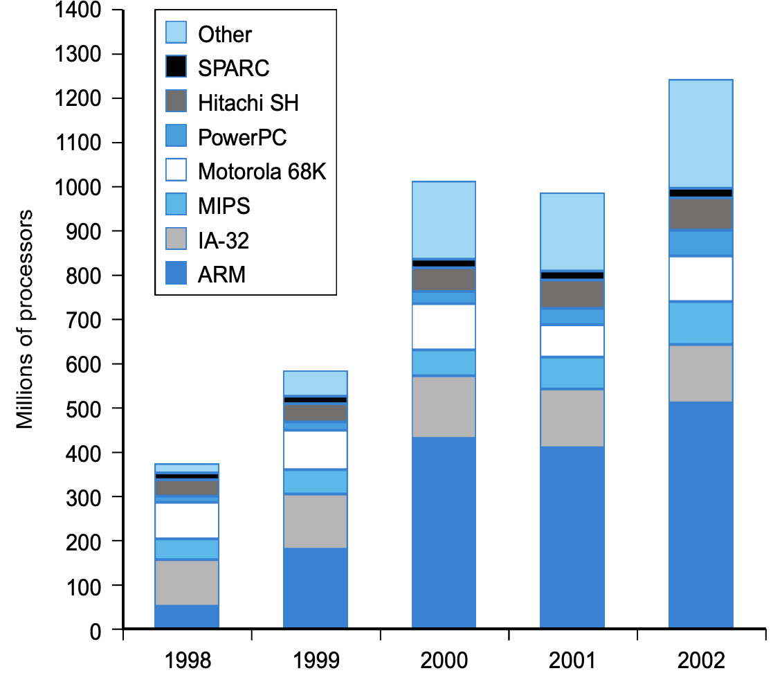 대부분 임베디드 시스템과 모바일 시장에서 차지하고 있으며, 때문에 점유율은 크지만 단가는 낮다.