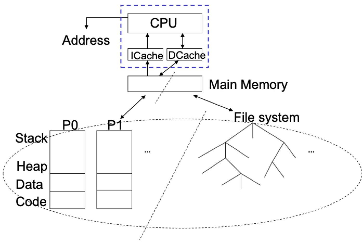 Disk는 프로그램 실행을 위한 부분과 permanent storage(file systems)으로 구성되어 있다.