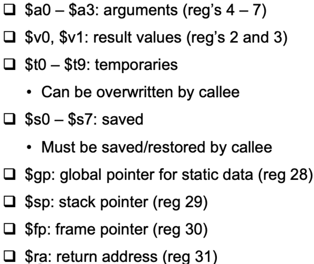 Register의 이름은 대부분 프로그램 실행, procedure call/return과 관련되어 붙어진 것이다.