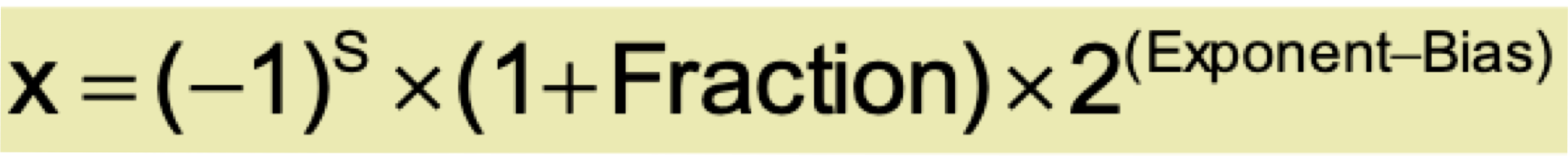 - 따라서 bit 수를 절약하기 위해서 significand은 1 + fraction으로 나눠서 표현한다.