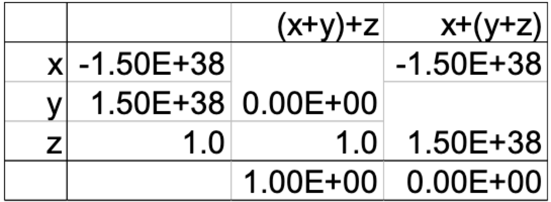 x + y + z의 연산에서 (x + y)를 먼저하는지, (y + z)를 먼저하는지에 따라서 연산 결과가 달라질 수 있다.