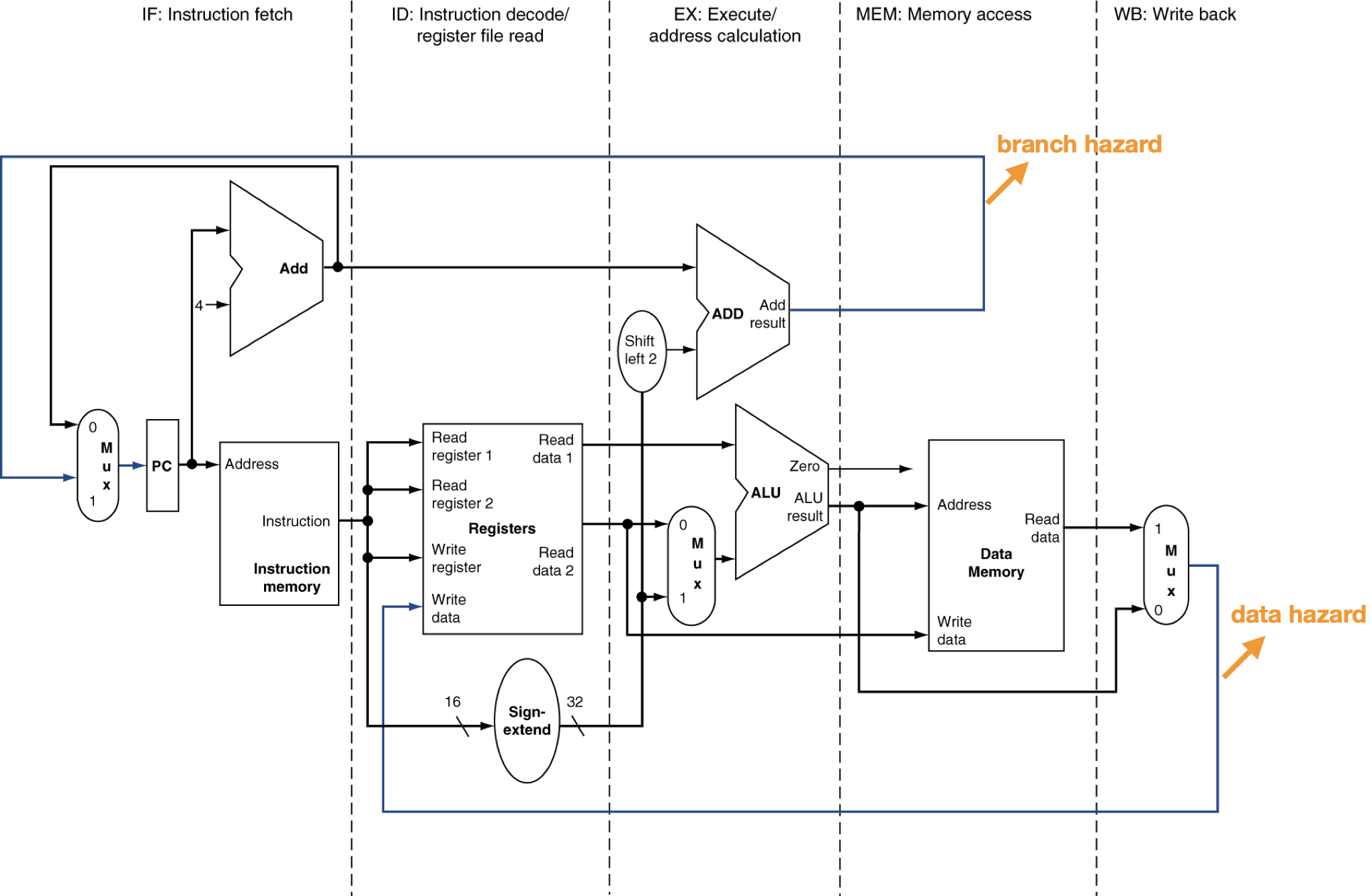 MEM stage에서의 cycle은 branch hazard를 일으키고,