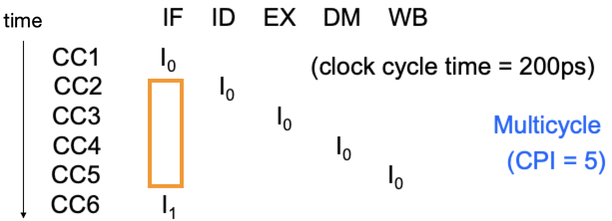 단순히 multicycle로 구성하면 각 단계 사이에 노는 시간이 발생한다.
