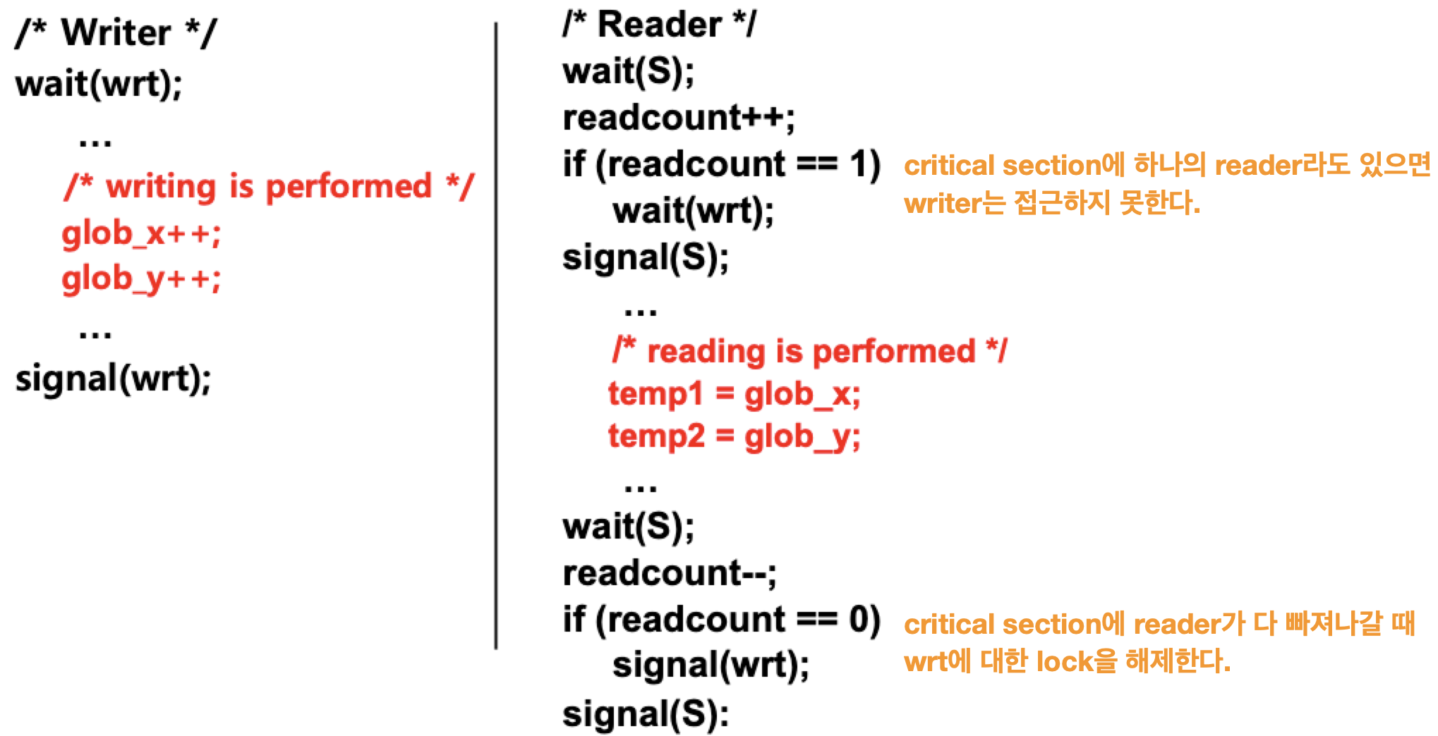 - reader : critical section에 읽기만 가능하다.