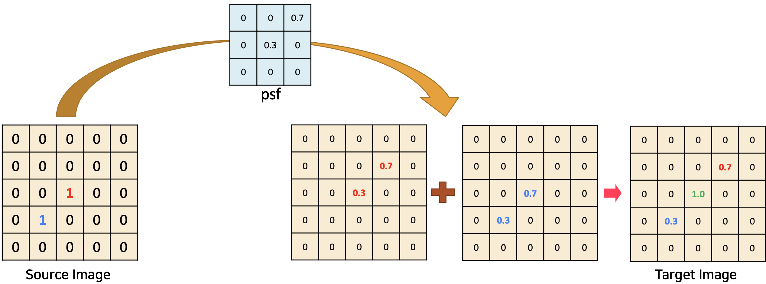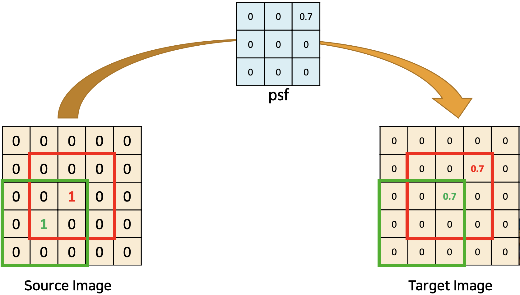 적용하고자 하는 soruce image의 각 point를 중심으로 filter를 적용하여 target image로 변화시킨다.