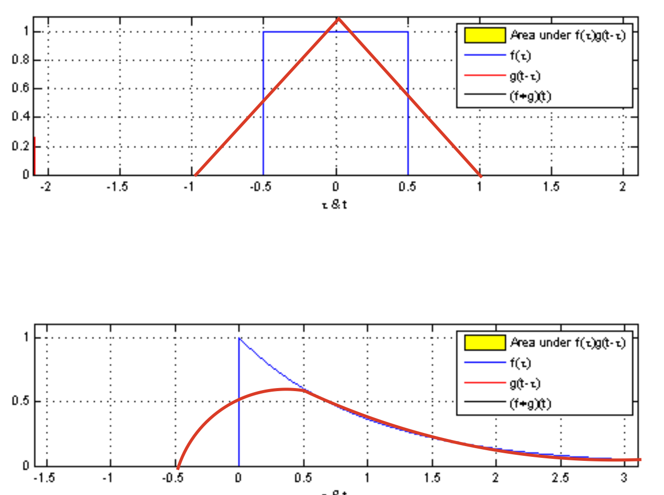 $f(t) * g(t) = \int ^{\infty} _{-\infty} f(\tau) g(t - \tau) d \tau$