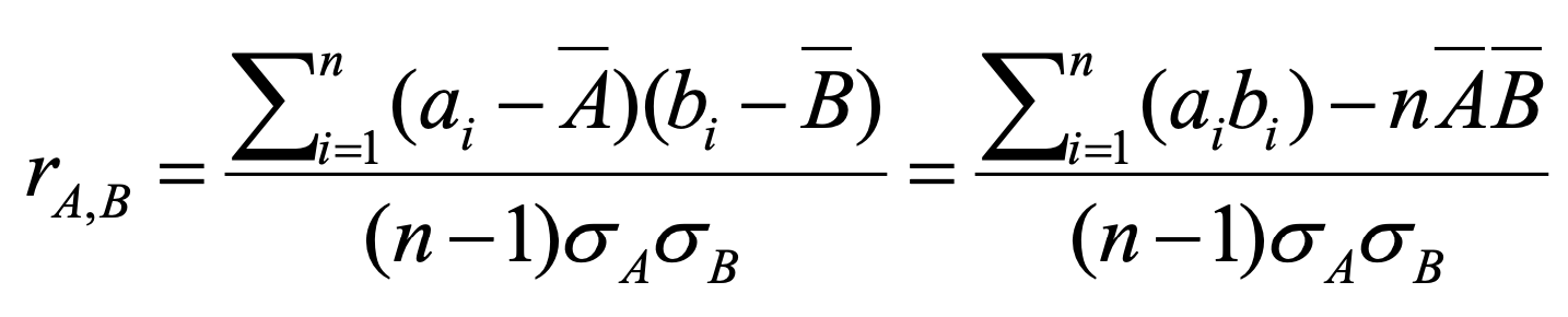 - $r_{A, B} < 0$ : A와 B는 음의 상관관계를 가진다.(반비례관계)