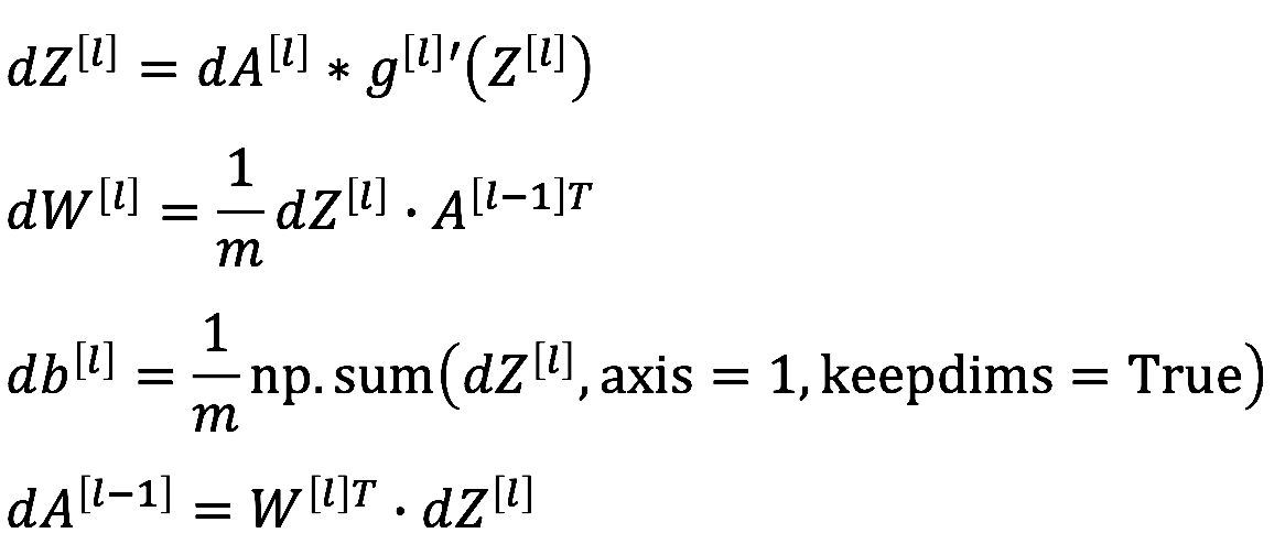 - $A^{[l]}$, $dA^{[l]}$ : $(n^{[l]}, 1)$
