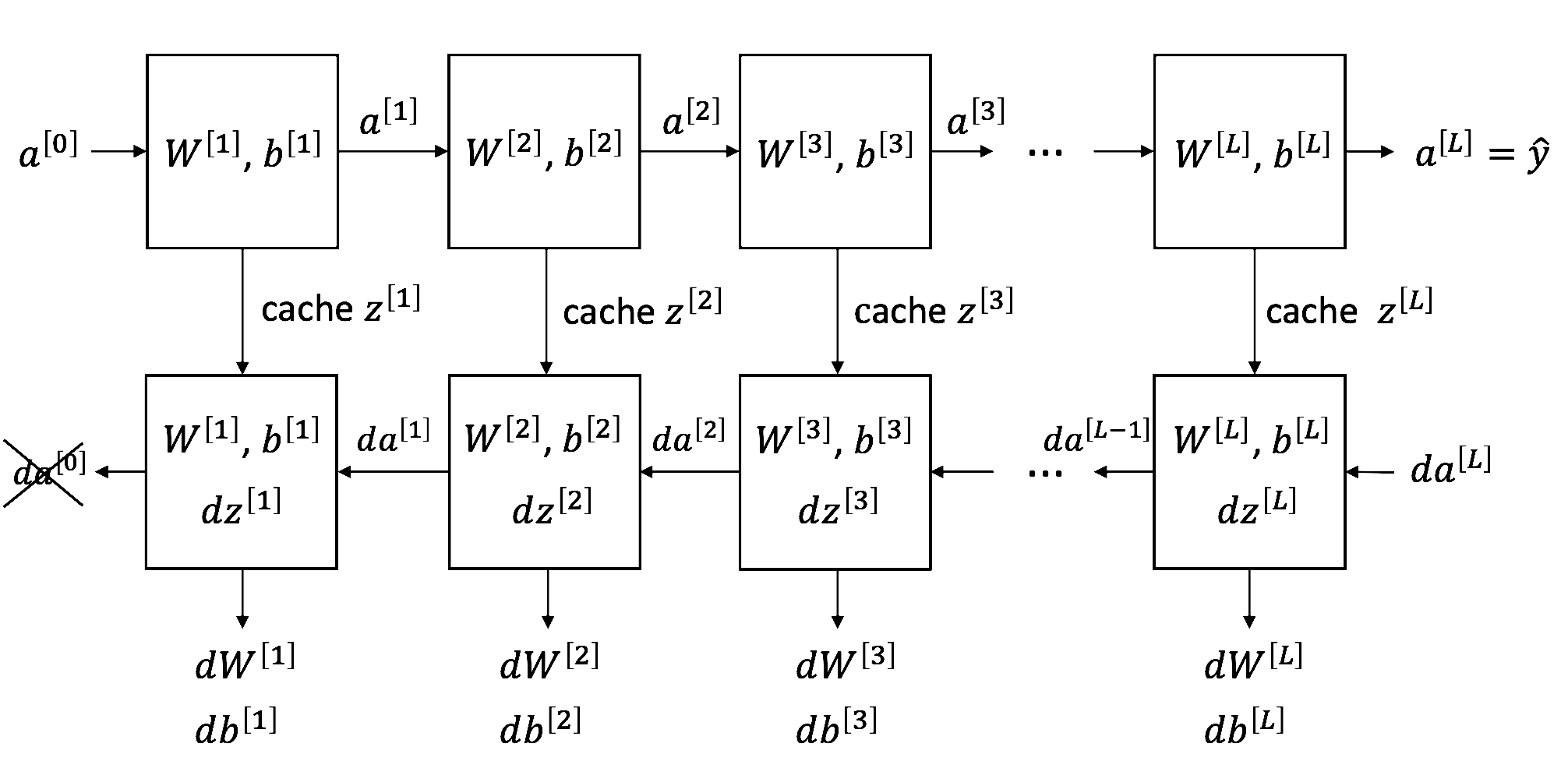 Backward propagation을 통해 gradient를 구할 때에는 a와 z 값을 caching 해놓는 것이 좋다.