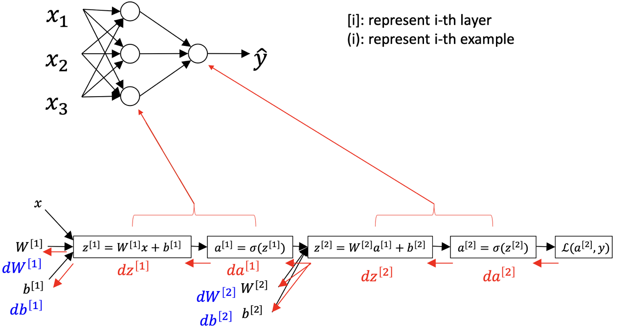 따라서 forward에서 구한 $a^{[l]}, z^{[l]}$의 값들을 버리지말고 저장해놨다가 backward에서 사용하는 것이 연산 시간을 줄일 수 있다.