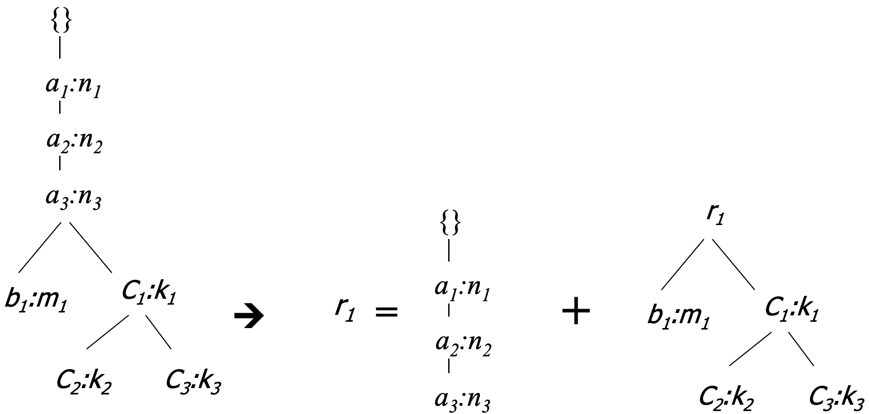 아래와 같은 single prefix-path에 대해서는 $a_1, a_1a_2, a_1a_2a_3$가 가능한 조합이다.