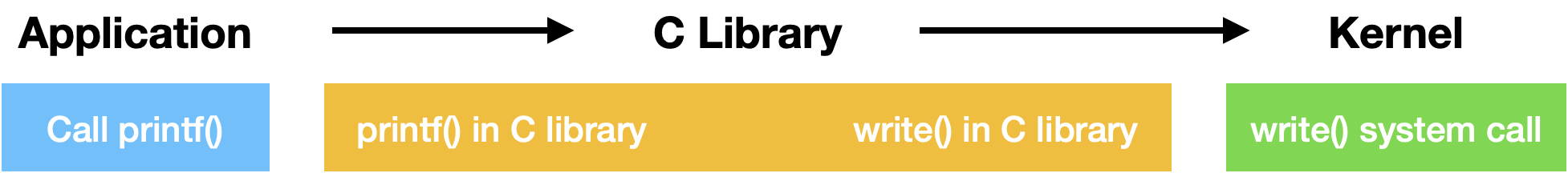 예를 들어 printf() 함수를 application에서 호출한다고 하자.