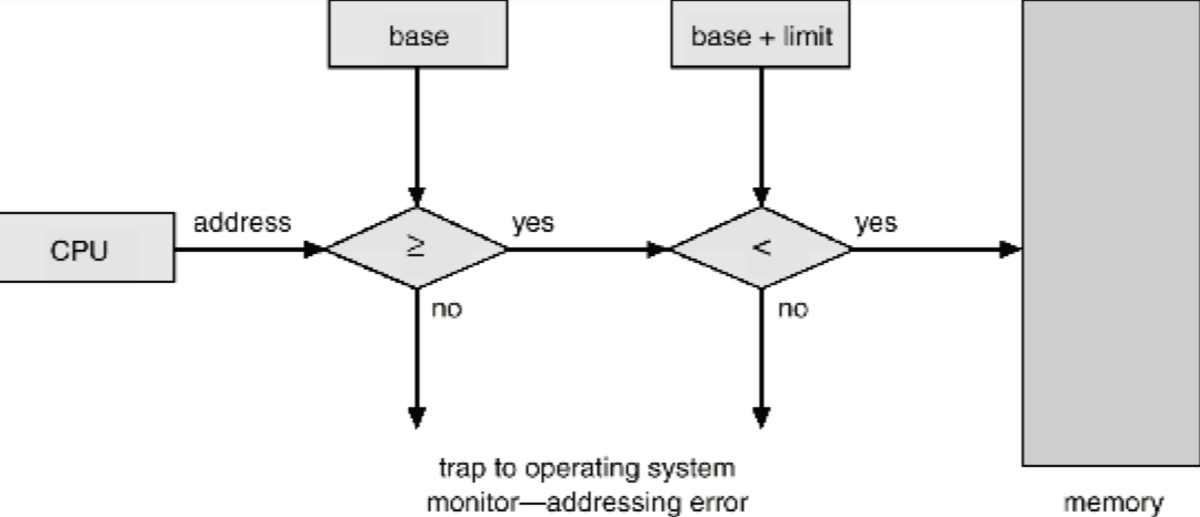 프로그램이 메모리를 참조할 때마다 해당 프로그램의 base와 limit의 범위에 있는가를 확인한다.