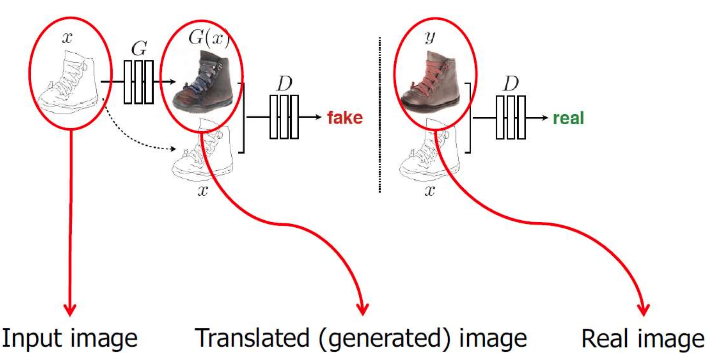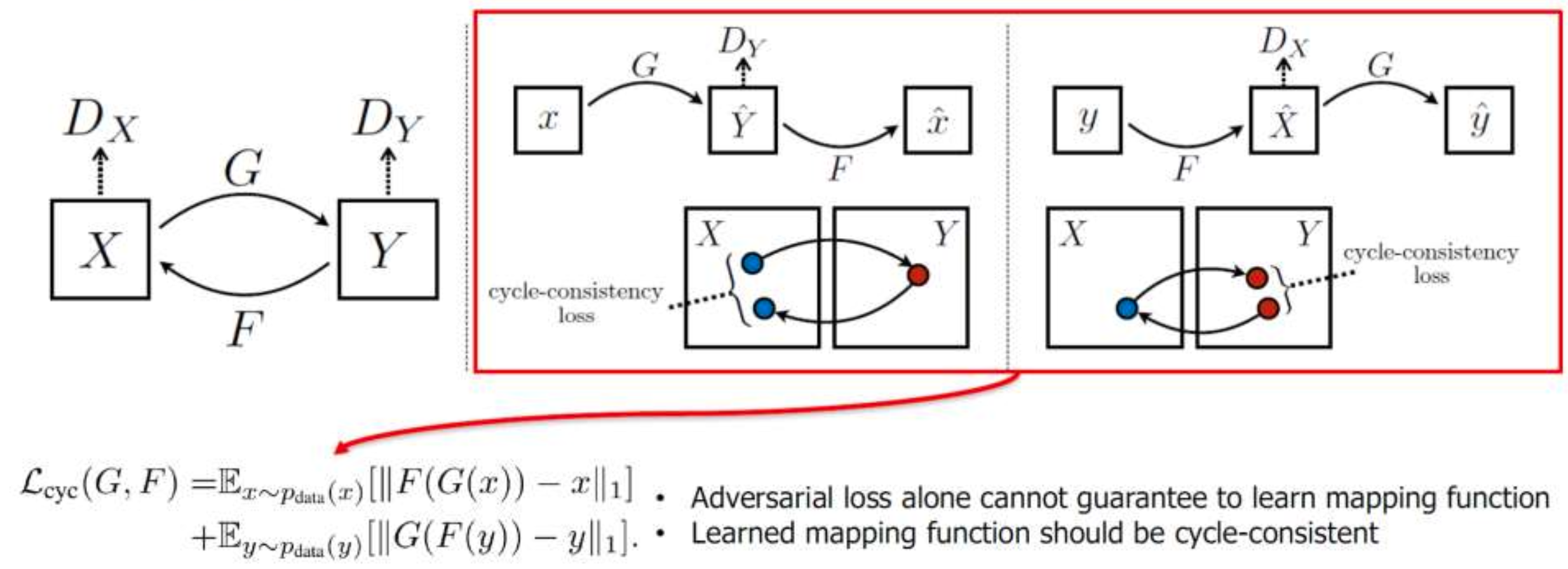 이를 통해 서로가 서로를 만들도록 함으로써 (x, y) 중 하나만 데이터셋에 존재하면 된다.