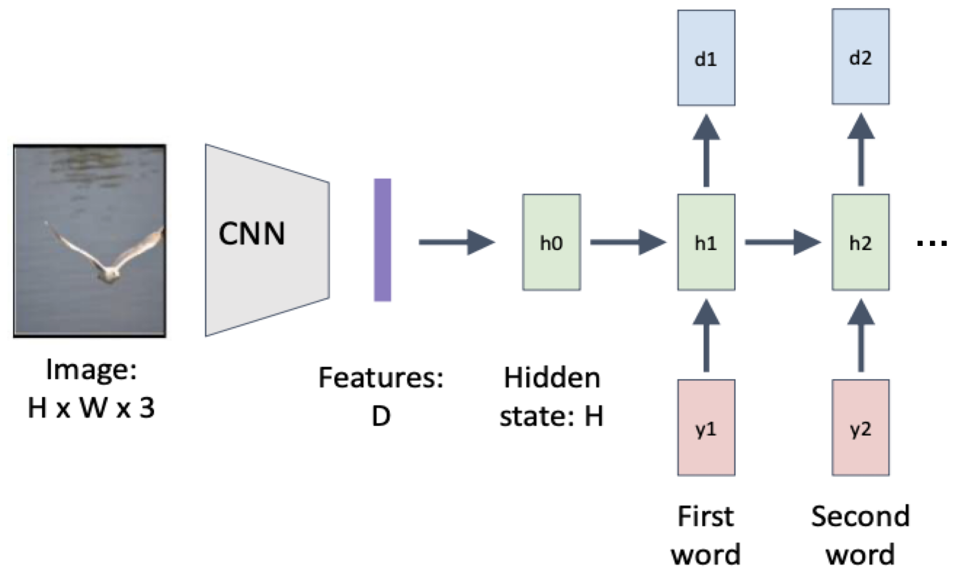 CNN을 통해서 visual information을 뽑아내어 feature vector를 만들고, RNN을 이용하여 그 정보들을 합쳐서 단어 sequence를 만들어 내는 것이다.