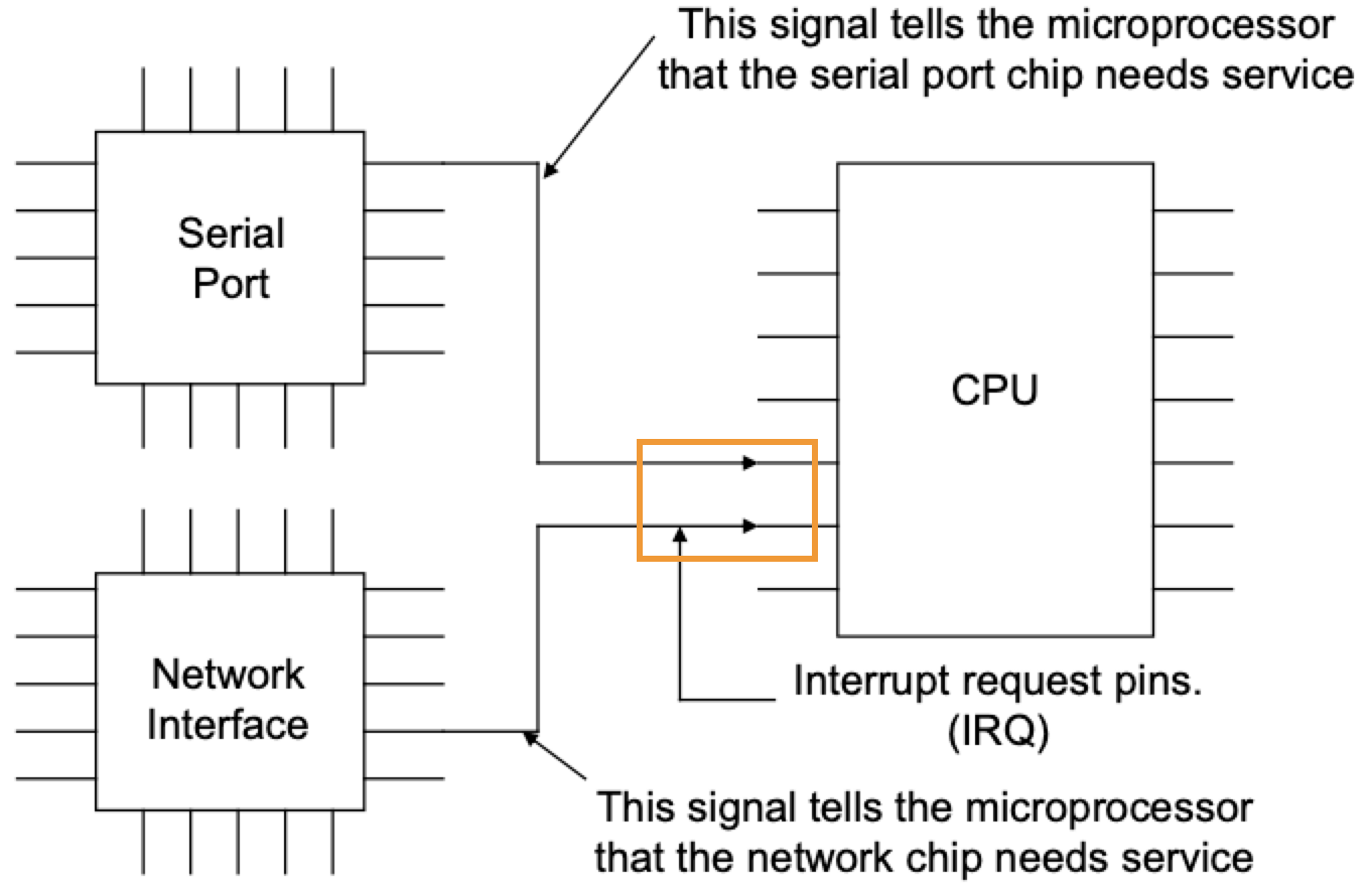 이를 통해서 CPU는 IRQ pin의 수보다 더 많은 여러 개의 I/O 장치들을 연결할 수 있다.
