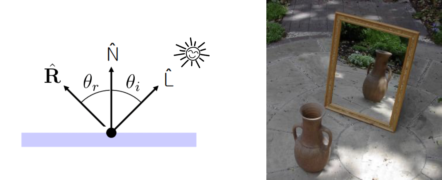 일반적인 물체는 diffuse reflection과 specular reflection을 모두 가지고 있다.