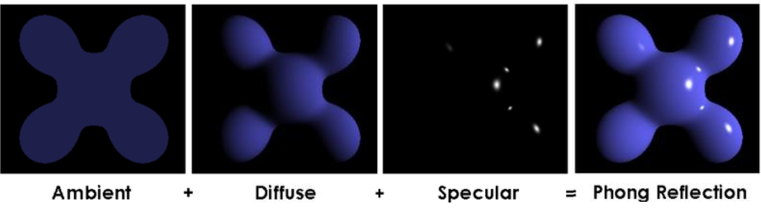 ambient, diffuse, specular를 합해서 전체 illumination을 나타내면 다음과 같이 된다.