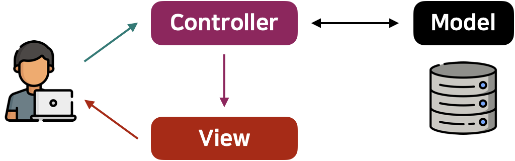 - 사용자의 입력 처리와 흐름을 제어하고, 사용자에게 받은 명령을 model이나 view로 라우팅한다.