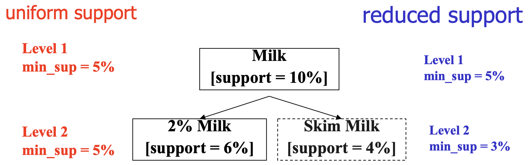 Uniform support를 적용하면 레벨에 관계 없이 동일한 min_sup을 적용하게 된다.