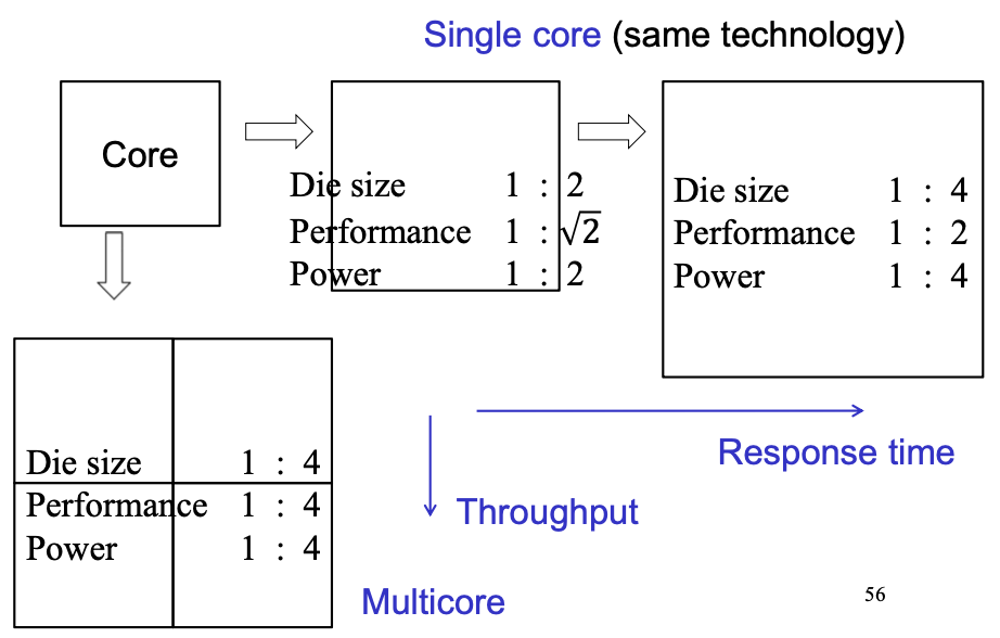 그동안의 single core에서의 발전은 response time을 감소시킴으로써 이루어졌다.