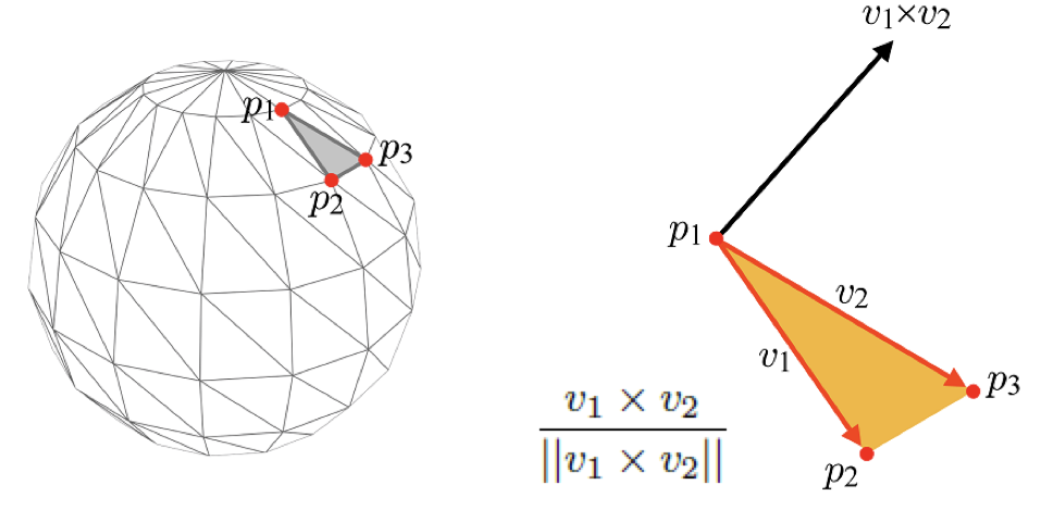 - cross product를 사용해서 각 face normal을 계산한다.