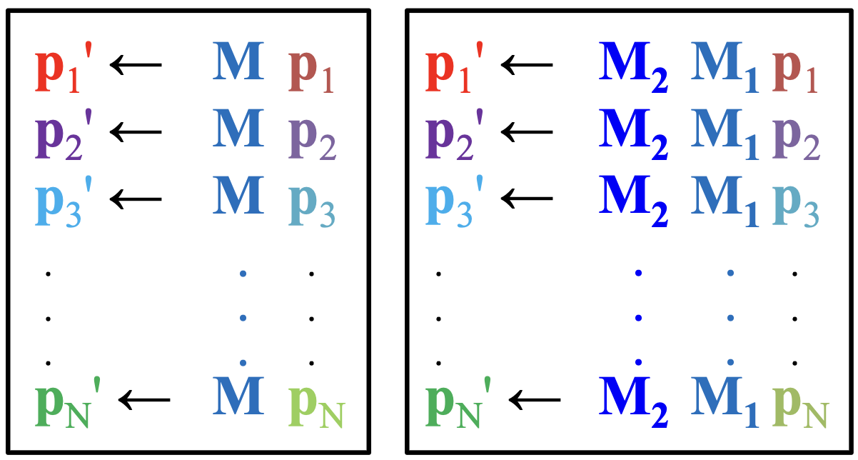 Current transformation matrix의 상태는 right-multiplication으로 변한다.