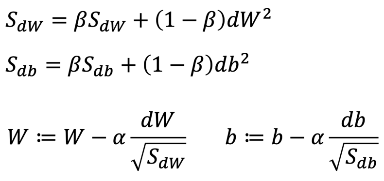 dW와 db에 대한 제곱에 대해 exponentially weight를 건다.