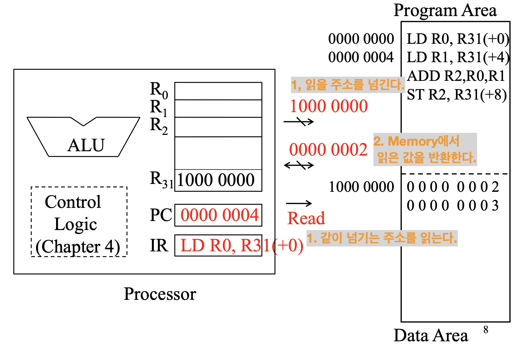 => 해석 결과 : "memory address 1000 0000을 읽고, R0 register에 복사한다."