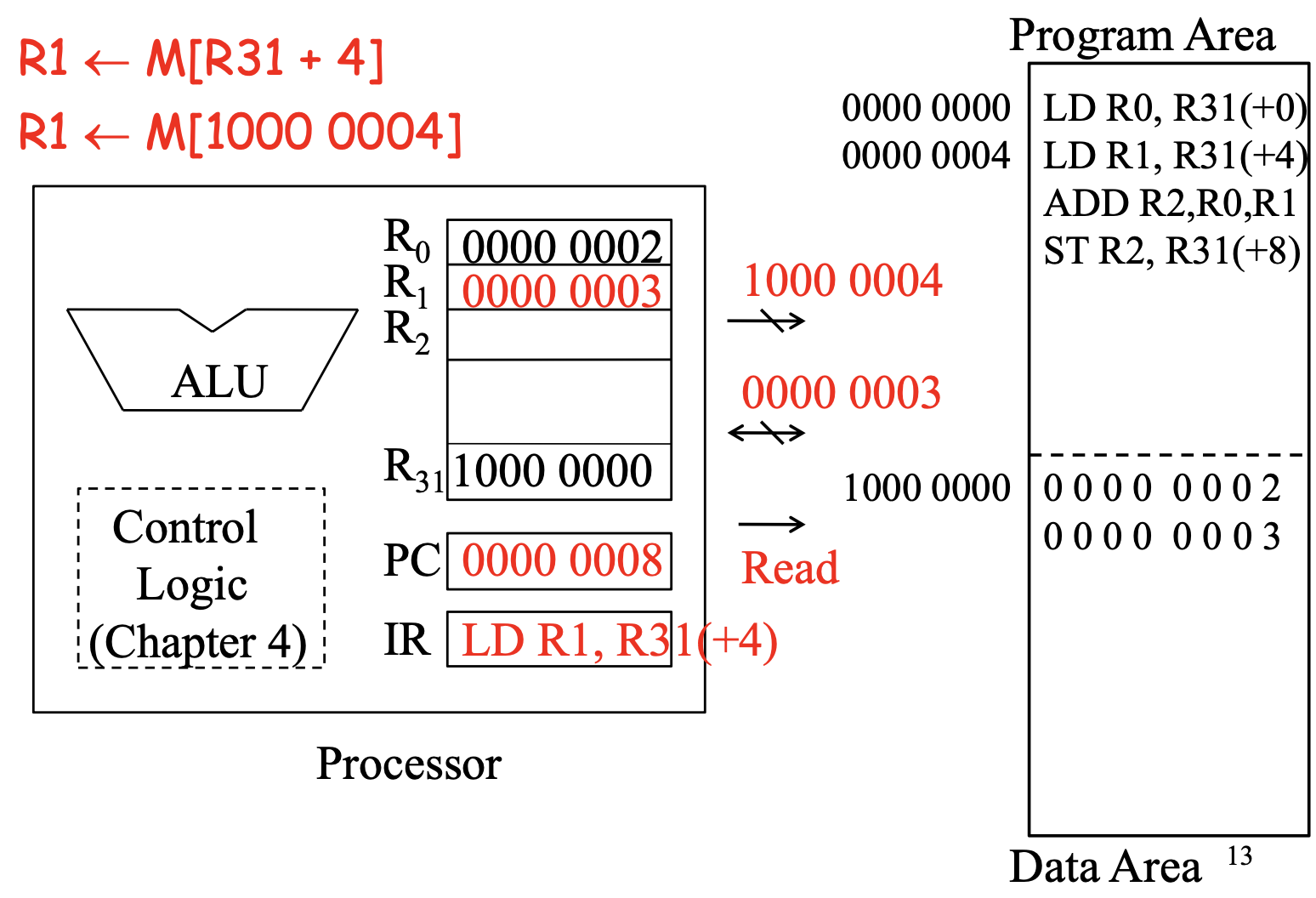 - address (R31 + 4)의 값을 load해서 R1에 넣는다.