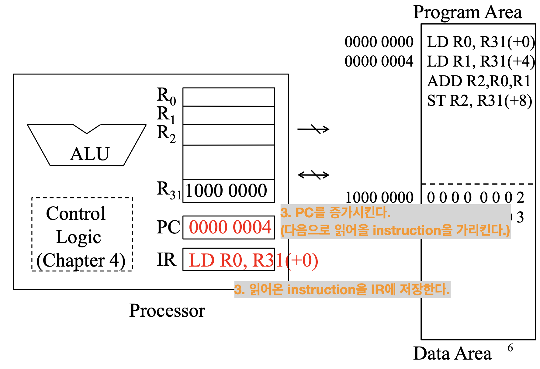 <pre>LD, R0, R31(0) // 메모리에서 instruction을 load 한다.