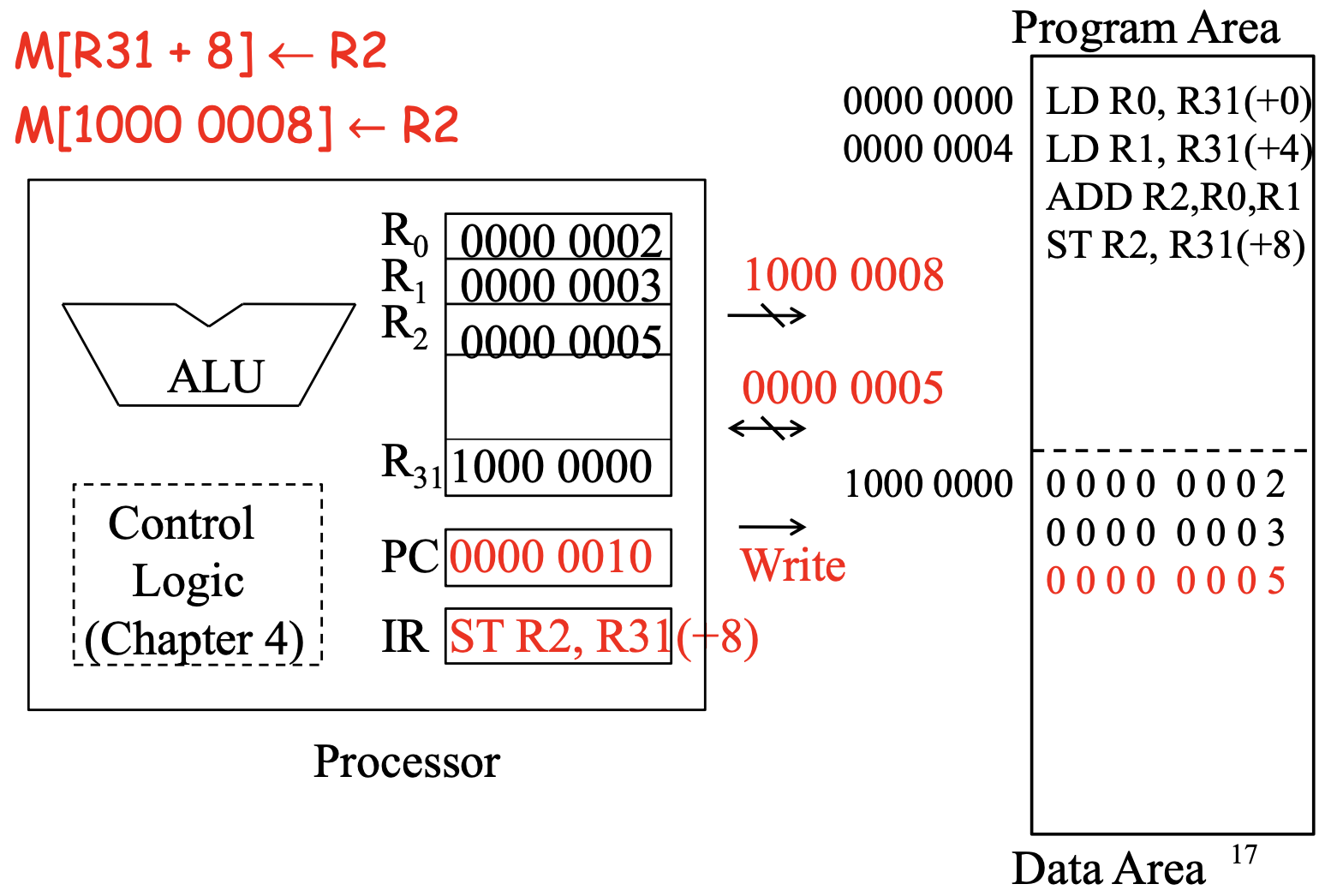 - (R31 + 8)의 값을 불러와서 R2에 담겨있는 주소에 저장한다.(Memory store)