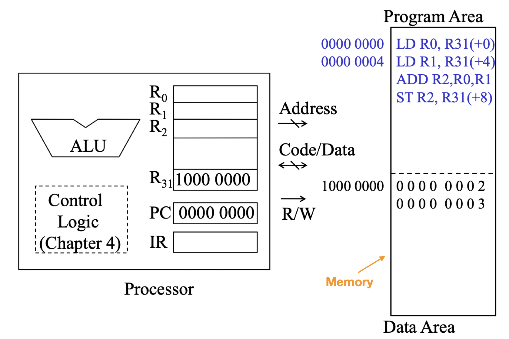아래는 간단하게 나타낸 processor와 memory의 구조이다.
