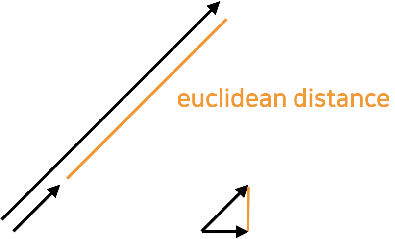 Document 간의 similiarity를 계산할 때 euclidean distance를 이용하면 방향성을 고려하지 못하고 크기만 고려하게 된다.