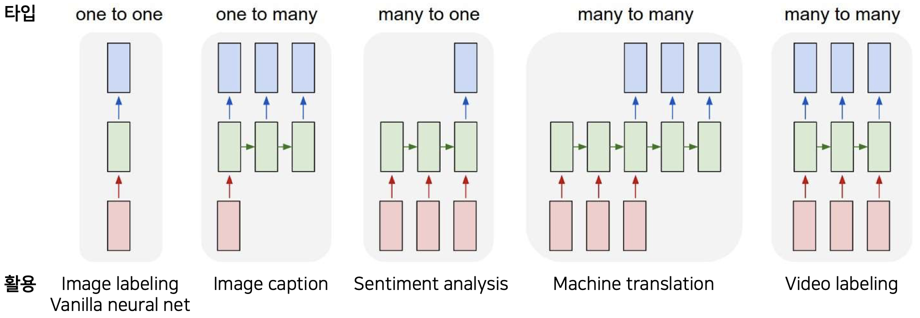 - RNN은 임의의 길이를 input으로 받아들여서 임의의 길이의 output을 낼 수 있다.