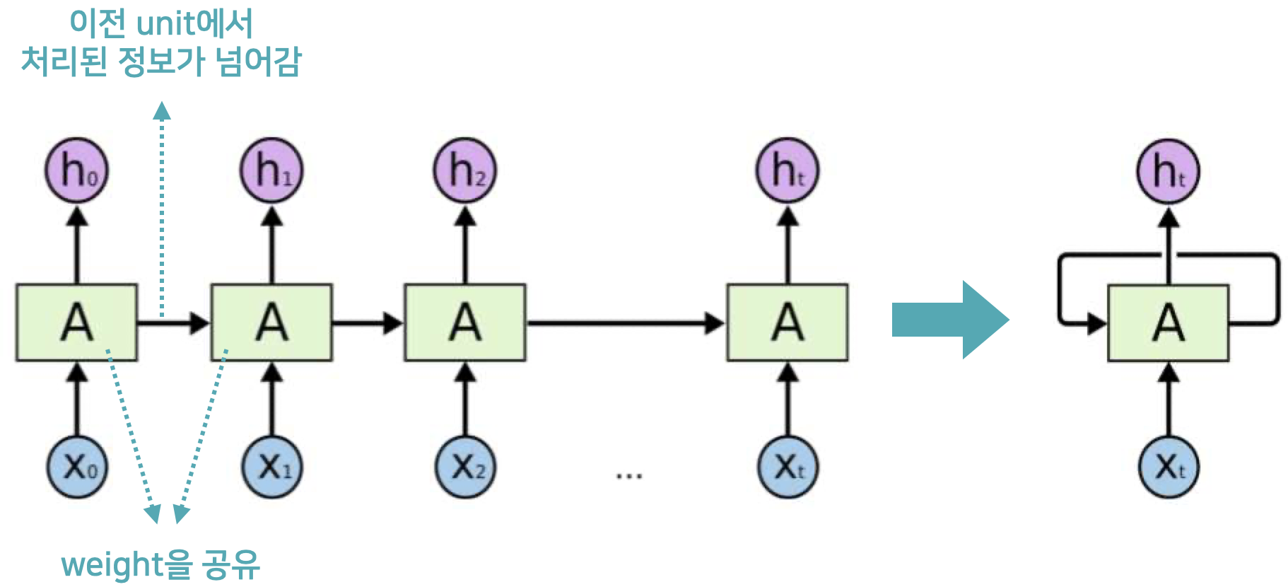 - RNN은 weight을 공유함으로써 이 문제를 해결한다.
