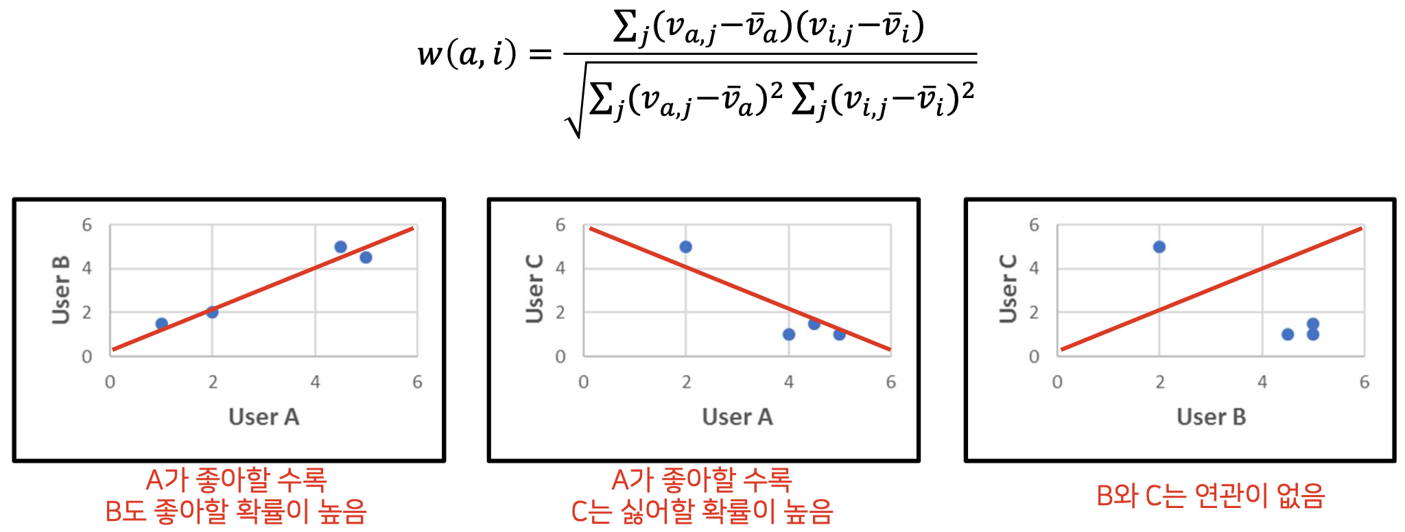 - Neighbor 찾기 : active user c와 취향이 비슷한 user group(neighbor)을 찾는다.
