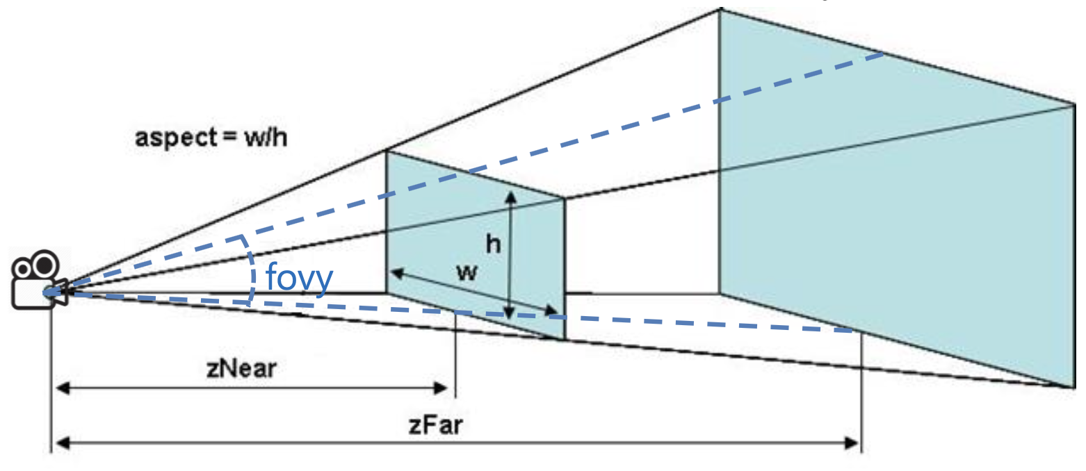<pre>gluPerspective(fovy, aspect, zNear, zFar)</pre>