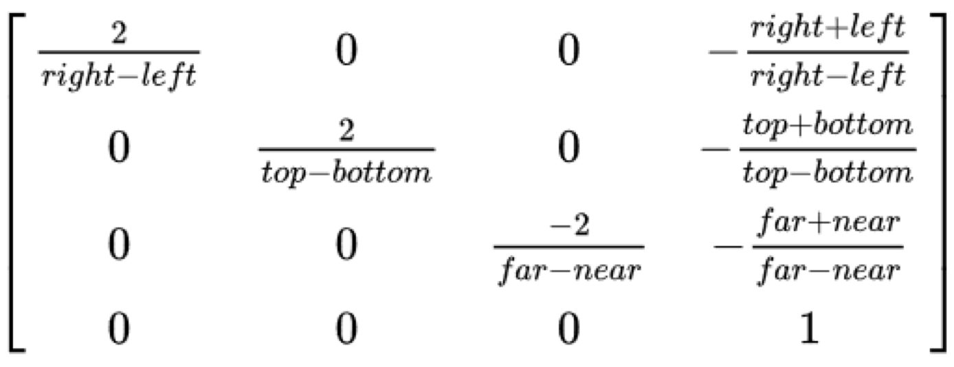 <pre>glOrtho(left, right, bottom, top, zNear, zFar)</pre>