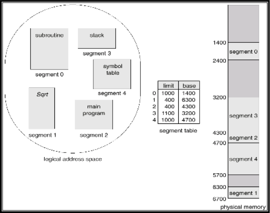 Segment table에는 logical address의 segment number가 physical address 로 매핑되는 정보가 들어있다.