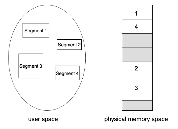 각 segment 들이 physical memory space에 흩어져서 저장된다.