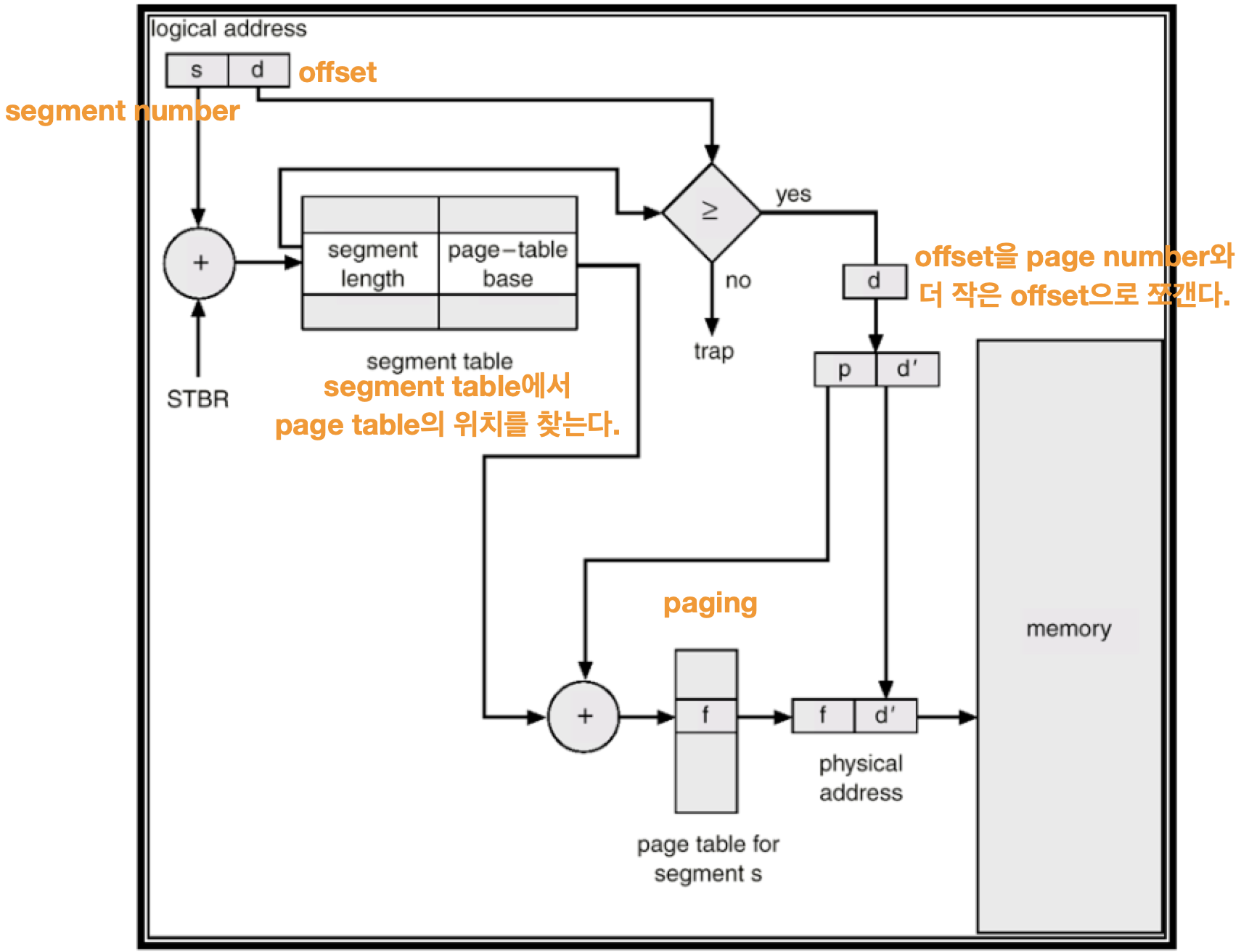 Segment table을 이용해서 logical address를 physical address로 translation 한다.