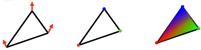 - polygon 내부는 각 vertex들의 색을 interpolate 해서 채운다.