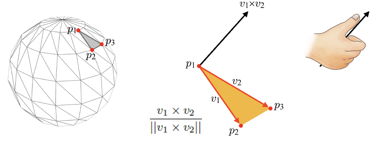 점의 순서대로 오른쪽 손을 감싸면 그것이 normal의 방향이다.